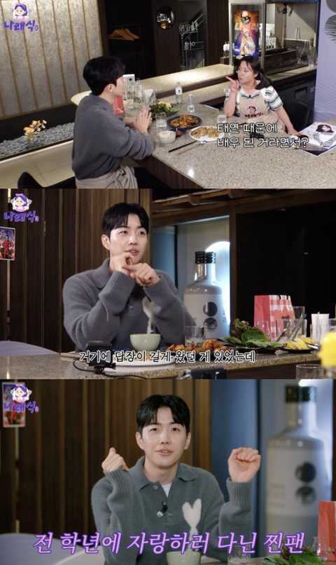 그는 "어떤 프로그램 나가게 되면 얘기를 하고 싶었는데.."라며 "옛날에 'UFO'라고 스타들과 문자를 주고 받는 어플이 있었다. 제가 '연기를 꿈꾸는 학생이다. 힘을 줬으면 좋겠다'라고 이렇게 보냈는데 거기에 (태연으로부터) 답장이 길게 왔던 게 있었다"라고 특별한 인연을 밝혔다.