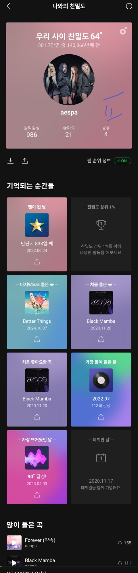 에스파 팬까지는 아니어도 좋아하는데 솔로곡까지 잘돼서 신기하고 좋아서 쓴 글임 카리나 까글 아님..