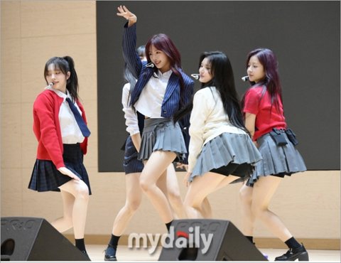 [마이데일리 = 화성(경기도) 한혁승 기자] 그룹 피프티피프티 하나(가운데)가 8일 경기도 화성시 송산동 안용중학교에서 열린 웹예능 '오늘 우리 학교는 시즌3' 현장공개에 멋진 공연을 선보였다.