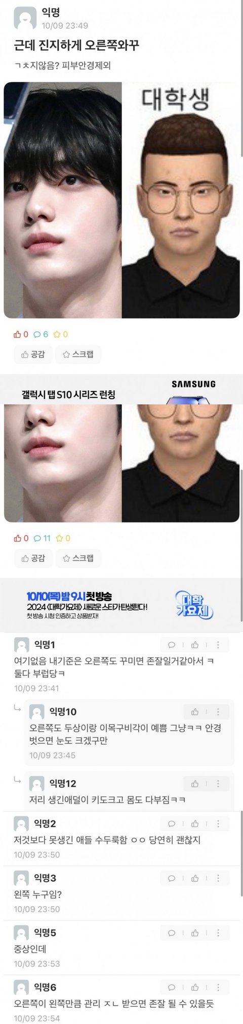 얼굴 상위 10%다 아니다 논란인 사진