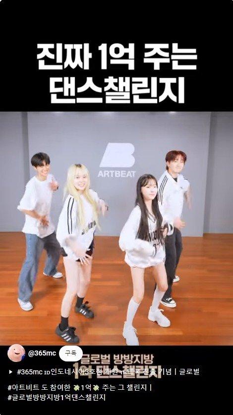 1억원 주는 댄스 챌린지인데 애기들도 추는거 종종 보이던데