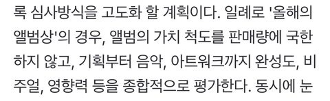내년 완전체 앞두고 우리한테 유리한건지 불리한건지 모르겠네 노래상은 사실상 누적치에서 딸릴 게 뻔해서 좀 간당간당한데 앨범상은 안겨줄 자신 있었거든 솔직히ㅋㅋㅋㅋ아 근데 앨범상을 건드리네 뭐 말 안해도 기깔나는 앨범 갖고 오실테지만