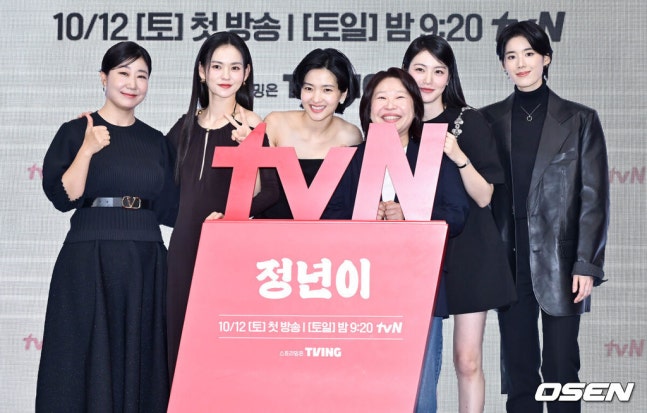 [OSEN=조은정 기자]tvN 새 토일드라마 '정년이'(극본 최효비, 연출 정지인) 제작발표회가 10일 오후 서울 영등포구 콘래드 서울 호텔에서 열렸다.'정년이'는 1950년대 한국전쟁 후 최고의 국극 배우에 도전하는 '타고난 소리 천재' 정년이를 둘러싼 경쟁과 연대, 그리고 찬란한 성장기를 그리는 드라마. '여성 국극'이라는 신선한 소재로 눈길을 끈다. 배우 라미란, 김혜윤, 김태리, 신예은, 정은채가 포즈를 취하고 있다. 2024.10.10 /cej@osen.co.kr