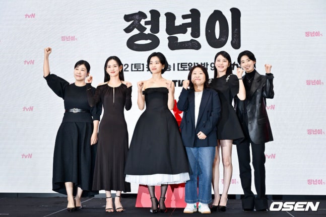 [OSEN=조은정 기자]tvN 새 토일드라마 '정년이'(극본 최효비, 연출 정지인) 제작발표회가 10일 오후 서울 영등포구 콘래드 서울 호텔에서 열렸다.'정년이'는 1950년대 한국전쟁 후 최고의 국극 배우에 도전하는 '타고난 소리 천재' 정년이를 둘러싼 경쟁과 연대, 그리고 찬란한 성장기를 그리는 드라마. '여성 국극'이라는 신선한 소재로 눈길을 끈다. 배우 라미란, 김혜윤, 김태리, 감독 정지인, 신예은, 정은채가 포즈를 취하고 있다. 2024.10.10 /cej@osen.co.kr정지인 감독은 “여성 국극을 하기 위해 모인 여성들의 이야기인데, 시골에서 올라온 정년이가 매란국극단에 입단하고 만나게 된 사람들과 성장하는 내용을 담았다”며 “원작의 메시지를 달리 간다고 생각하진 않는다. 원작 속에 있었던 여성 서사 같은 게 벗을 수 없다. 그 뿌리에서 나왔기에 굳이 숨기지 않는다. 각색 과정에서 상의하면서 크게 잡아야 할 건 1950년대 여성을 포함한 많은 사람이 꿈을 향해 달려가는데 그건 지금도 같다고 생각했다. 그 시절 사람과 지금이 다르지 않다고 생각해서 드라마를 만들었다”고 말했다.