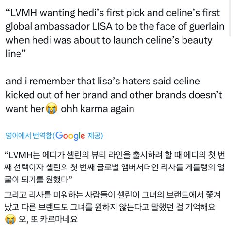 그냥 리사를 뷰티쪽에 모델로 쓰고 싶었는데 그 브랜드내에 갈등 때문에 못 했나봐 그냥 리사가 셀린느에 중요 모델이였던게 확실해졌네