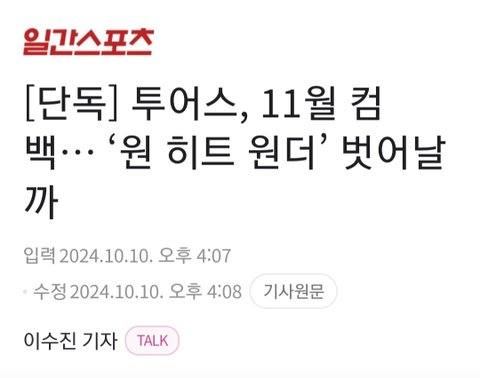 투어스 컴백기사 쓴 꼬라지ㅋㅋㅋ