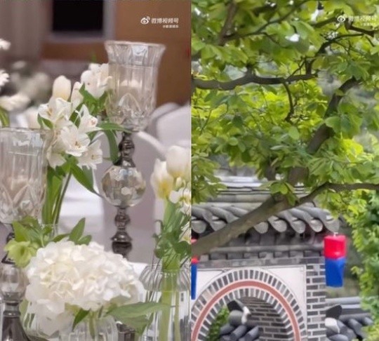 웨이보 캡처공개된 영상 속에는 오는 11일 결혼을 앞두고 있는 현아와 용준형의 야외 결혼식장 일부 모습이 담겨 있다. 전통 분위기를 살려주는 청사초롱과 화려한 꽃장식, 우아한 테이블 세팅 등이 눈길을 사로잡는다.