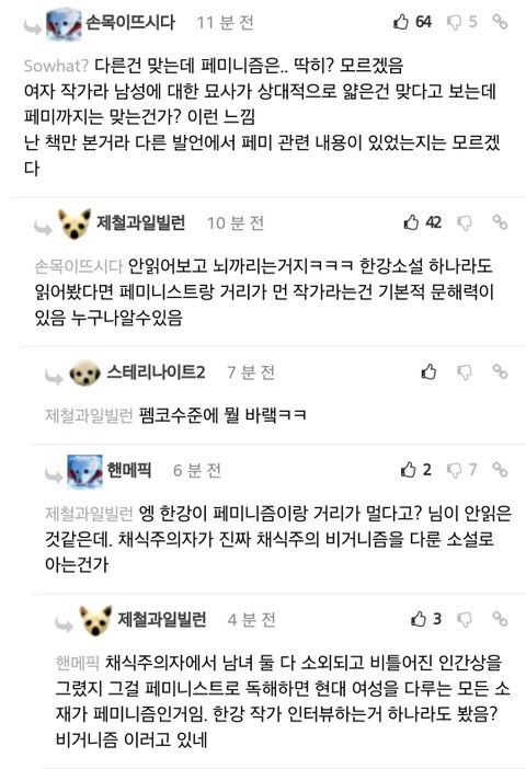 근데 외국인들이 보면 한강 페미라는거 웃길듯