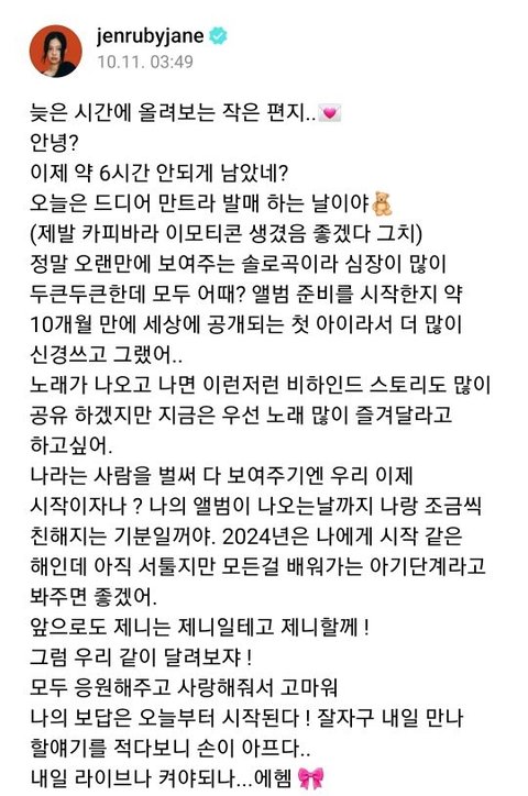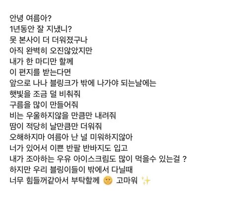 팬들한테 커엽게 편지 쓰는 거 여전해