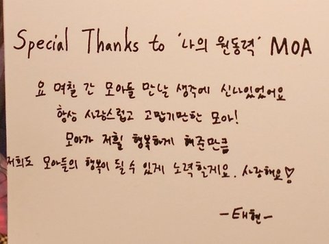 이렇게 다른 멤버들꺼랑 놓고 보면 태현이 진짜 천천히 꾹꾹 눌러 쓴 글씨인 게 보임ㅋㅋㅋㅋㅋ