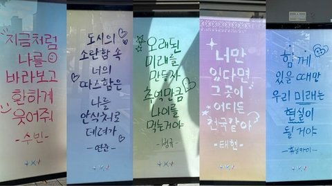 투바투 컴백 프로모션인데 손글씨로 쓴 메세지를 버정이랑 버스에 광고로 돌림!!이런 프로모를 처음 하는 건 아니고 943때는 지하철 프로모였음!