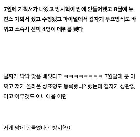 원래면 세계관이 엔하이픈 동생그룹 맞는데 뉴진스 기획안 보고 싹 다 갈아엎엇누