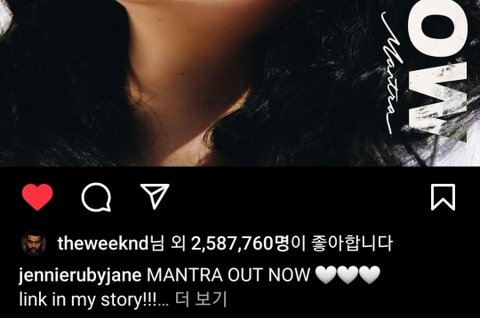 위켄드 제니 인스타 좋아요 누름