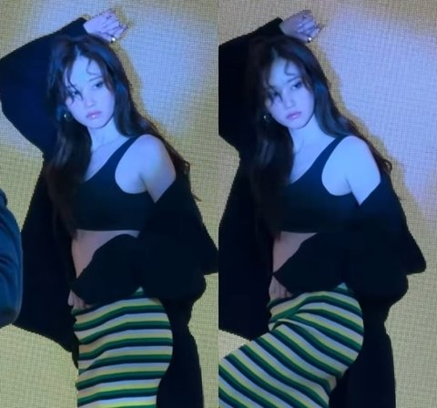 전종서는 블랙 컬러의 브라톱 위에 재킷을 살짝 걸쳐입고 도발적인 포즈를 취하고 있다. 특히 밀착 스트라이프 스커트를 입고는 명품 골반 라인을 자랑해 감탄을 자아낸다.
