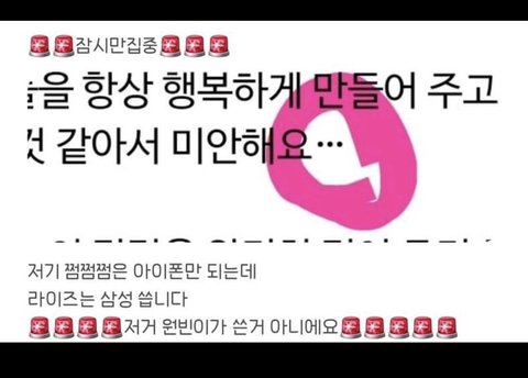 점점점 (…) 붙여쓰는거..? 삼성 폰으로 못하는데 붙여 썼다고 멤버가 쓴거 아니라고 하는데 삼성으로도 됨. 그리고 점점점 붙여쓴거 팬들이 눈치채니까 다시 수정했다고 하던데 수정된 적 없음. 그냥 폰 기종마다 다르게 보이는 거임.