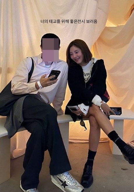 임신 중인 가수 겸 배우 손담비가 전시회에서 태교하며 시간을 보냈다.