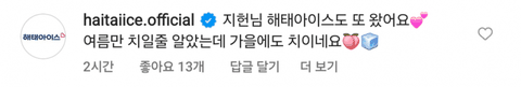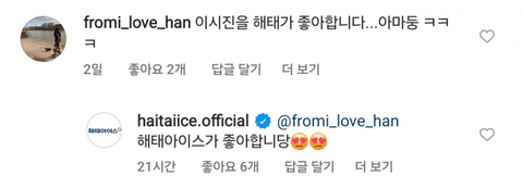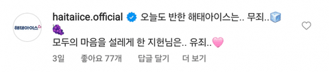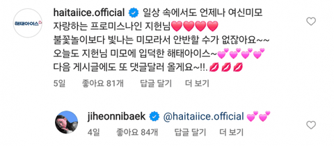 인별 해태아이스 공계가 프로미스나인 백지헌 인스타에 계속 댓글 다네