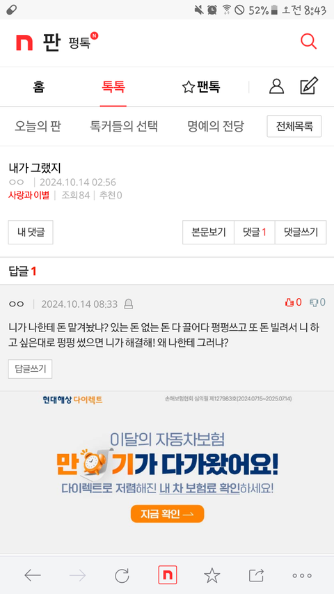 댓글 많은 톡