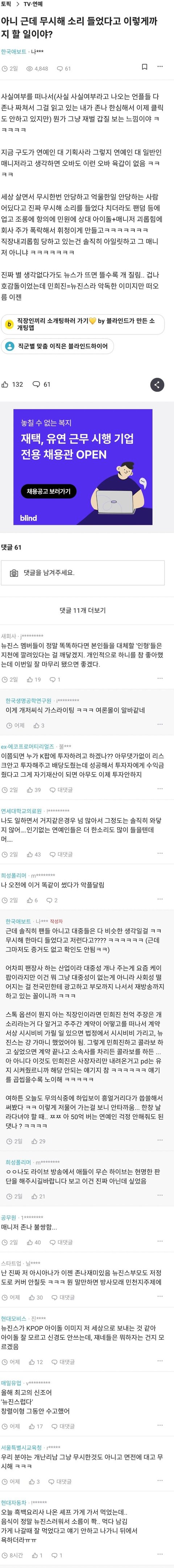 방탄 언급 ㄴ ㅁㄱ