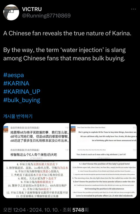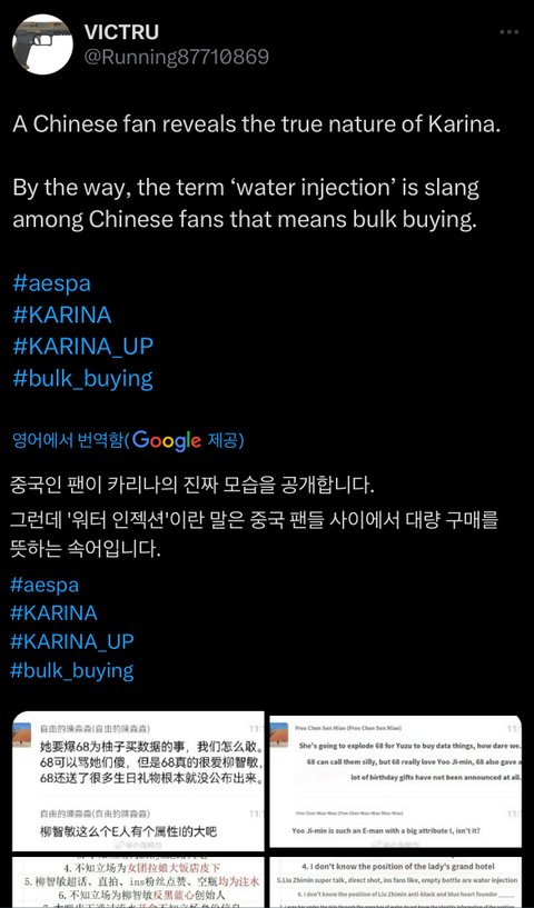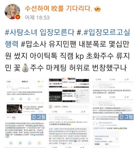 참고로 저 물주입은 중국팬 사이에서 사재기라는 은어임. 혹시 번역 잘하는 얘 있으면 부탁