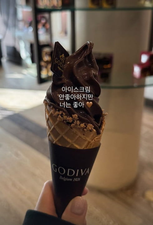 공개된 사진은 한 카페에서 출시한 초콜릿 아이스크림. 평소 아이스크림을 즐겨 먹지 않는다고 밝힌 유정은 해당 브랜드의 아이스크림 들고 취향을 드러내 눈길을 끌었다.