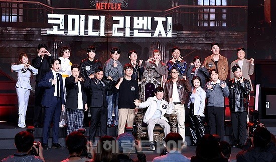 14일 서울 중구 동대문 브이스페이스에서 넷플릭스 예능 '코미디 리벤지' 제작발표회가 진행됐다. '코미디 리벤지'는 작년 공개된 '코미디 로얄'의 후속 편으로, 22명의 K-코미디언들이 이경규의 코미디 왕좌 자리를 두고 누가 더 웃기는지 가리는 코미디 컴페티션이다.