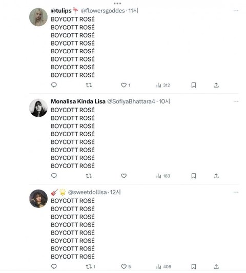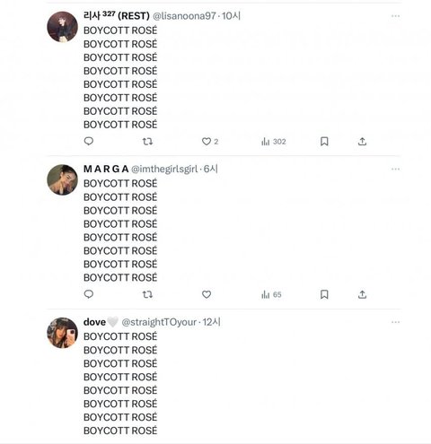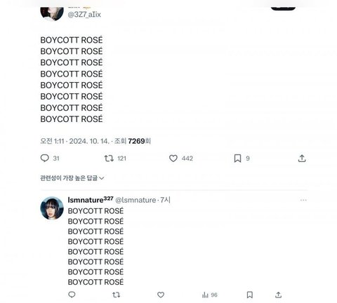 어차피 쟤네 개인팬이라 로제 소비 안하잖아 보이콧하면 뭐가 달라짐?ㅋㅋ 외퀴들은 원래 서로 치고박고 싸우니까 쳐 들고오지좀 마라