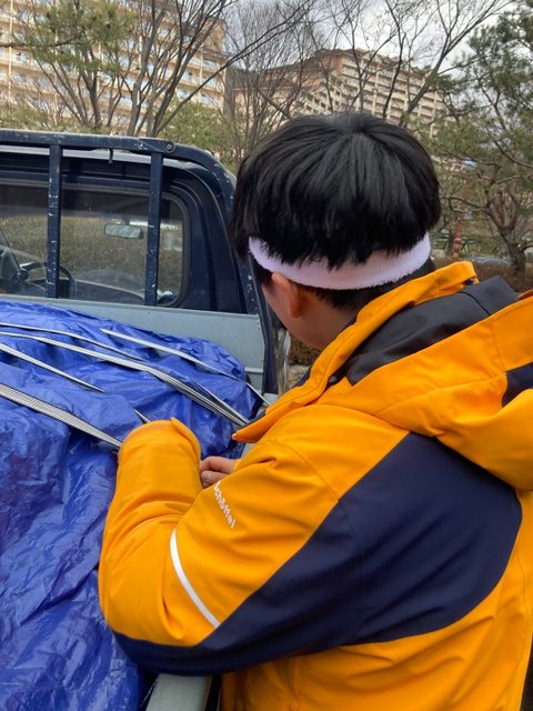 (국내시즌 때 상서 아버지께서 기부한 트럭에 짐을 적재하고 있는 아이들)