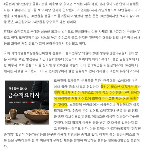 신용불량자·청년층 노리는 신종사채 ‘모바일깡’ 극성 - 경향신문 (khan.co.kr)