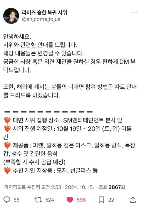 승한 복귀 대면 시위 일정 떴어