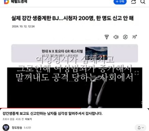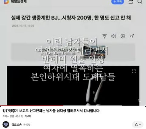 나도 남자인데 저걸 보고 심각하다 느껴야하는데 잠재적 범죄자취급하지말라는 도태남들 예비 범죄자임