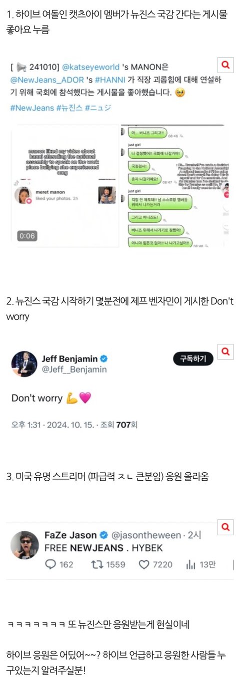 응 우리 합천지 또 블라인드 가져와서 정신승리중? 현실은 또!! 뉴진스는 유명인들한테 응원 줄줄이 뜨는중이네 ^^ 자 현실을 보자 합천지야~~ ㅋㅋㅋㅋㅋ