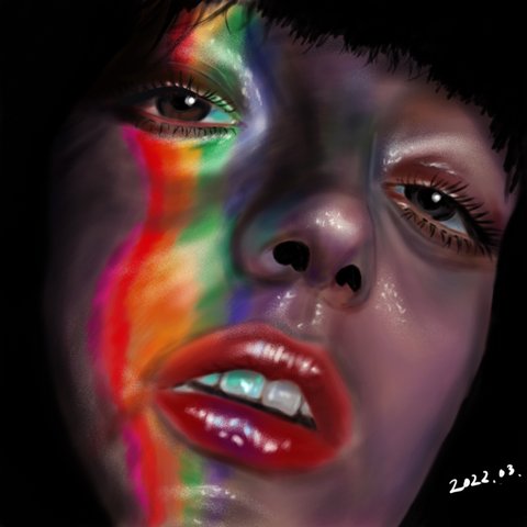 13. 강렬한 색감이 마음에 들어 고른 사진을 따라 그렸어요 3 스프레이로 피부톤 표현한 게 마음에 들어요