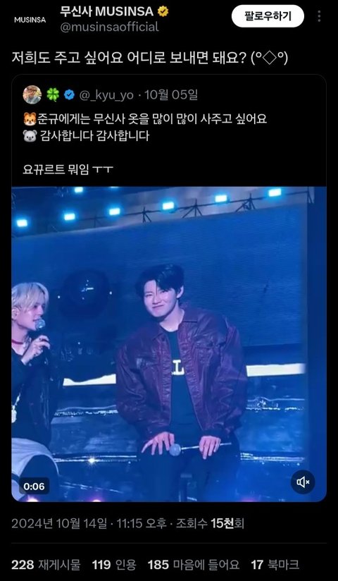 무신사 왜자꾸준규샤라웃함?????? 좋긴한데 그냥 당황스러워서.ㅋ