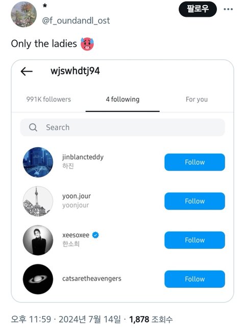 전종서가 팔로잉 하는거 ㄹㅇ임
