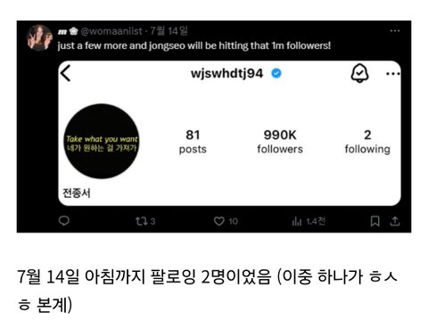 전종서 인스타 팔로잉 목록에 변화가 생김