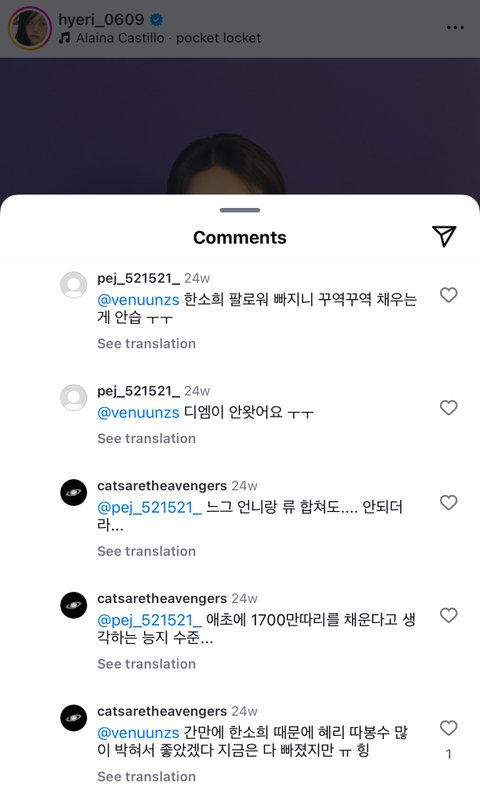 근데 새로 팔로우한 그 비계가 혜리 악플을 쓰고 다님 ㅇㅇ