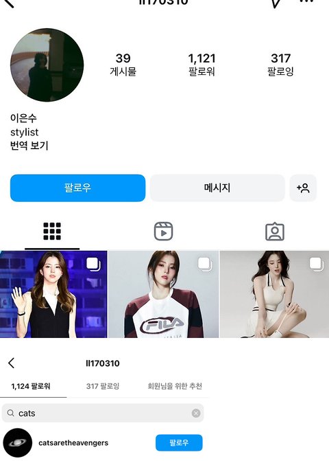 2. 한ㅅㅎ 스타일리스트 계정을 팔로우중임
