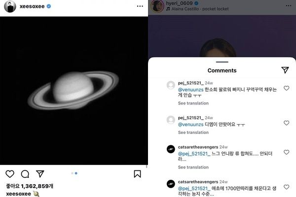 한소희는 최근 혜리 인스타그램에 악플을 난긴 비공개 계정(catsaretheavengers) 운영자로 지목됐다. "느그 언니(배우 류준열 옛 애인 혜리)랑 류(류준열) 합쳐도 (한소희한테) 안 되더라" "애초에 (한소희 팔로워)1700만 따리를 채운다고 생각하는 능지 수준" "간만에 한소희 때문에 혜리 따봉수 많이 박혀서 좋았겠다. 지금은 다 빠졌지만"라고 썼다.