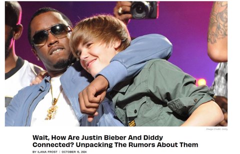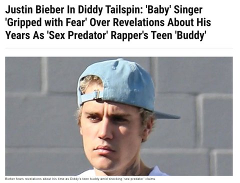 그 중 한 명이 어셔입니다. 저스틴 비버는 어렸을 때 디디에게 성적 학대를 당했음 디디는 저스틴이 유명해지기 전에 유튜브에서 저스틴 비버를 보았고, 저스틴 비버를 데려오고 싶었지만 그럴 수 없었어 어셔는 저스틴 비버를 미끼로 꼬셔서 "14세 선물"로 디디에게 데려온 사람임