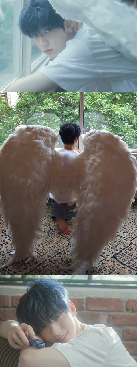 저 날개 두 사람이 낑낑대며 들고 왔다는데 키가 크니까 거대한 날개가 ㅈㄴ 잘 어울리네