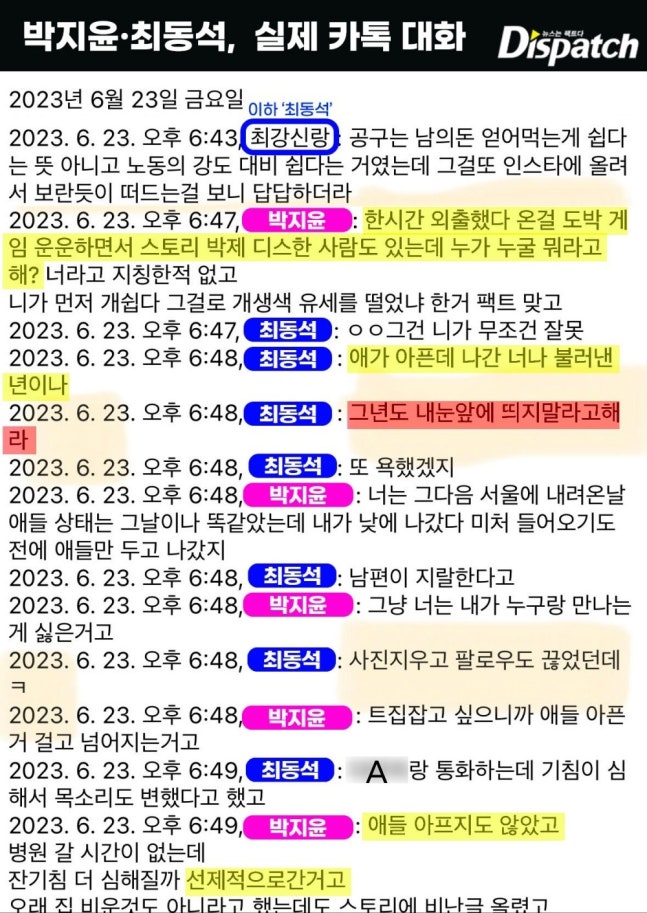 ⑦ 뒷담화 : 두 사람의 갈등에 불을 지핀 건, 바로 박지윤의 '뒷담화'다. 친구들과 모인 단톡방에서 최동석에 대한 험담을 늘어놓은 것.