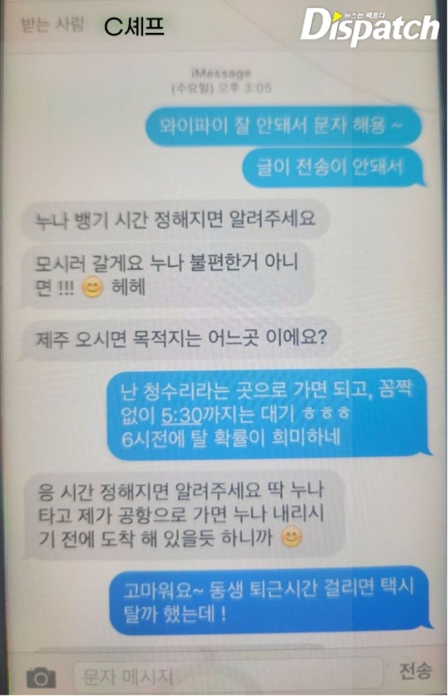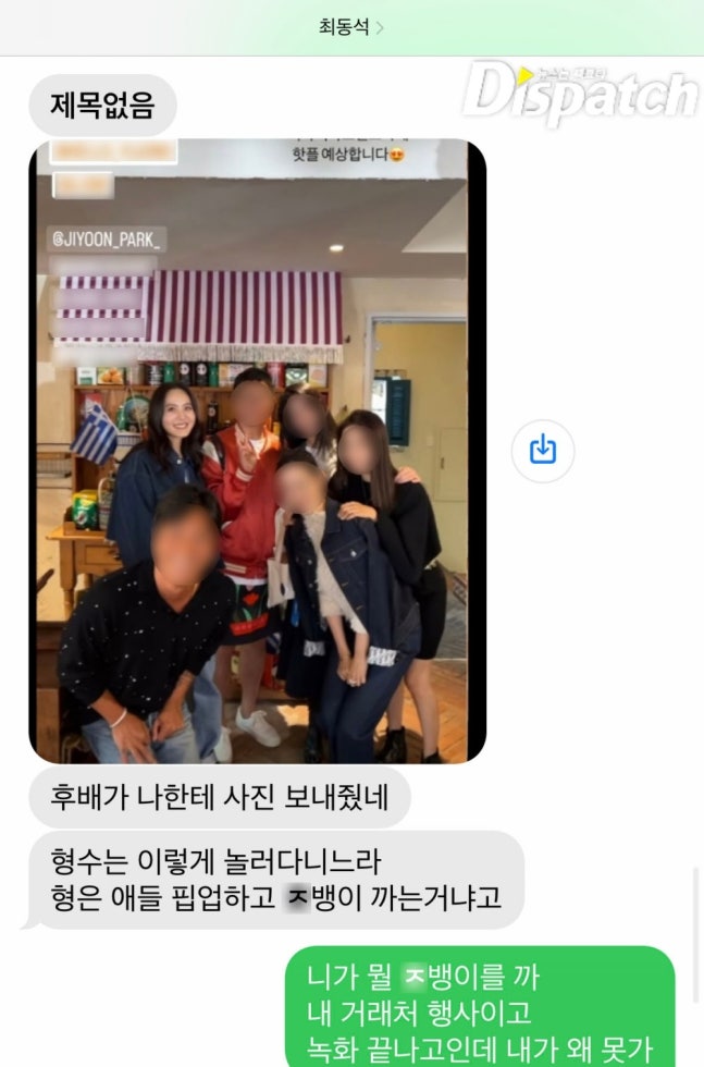 '디스패치'는 그날(5월 7일), 최동석과 장인이 나눈 문자를 통해 전후 사정을 알 수 있었다.