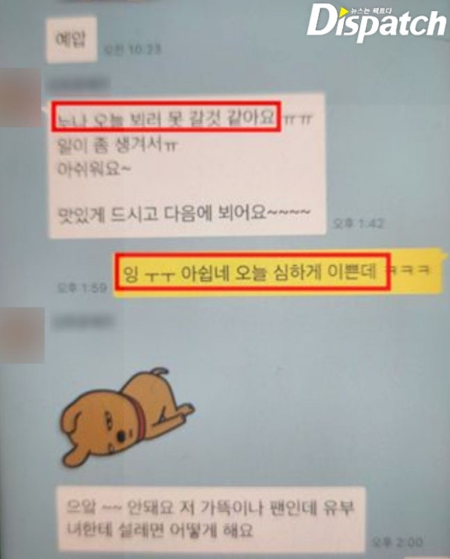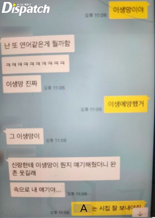 그리고 이 3,000만 원은 둘의 부부싸움에서 자주 등장한다. 다음은, '디스패치'가 입수한 카톡(재구성)이다.