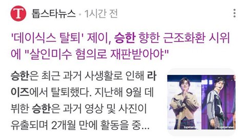 "데이식스 탈퇴' 제이, 승한 향한 근조화환 시위 에 "살인미수 혐의로 재판받아야"