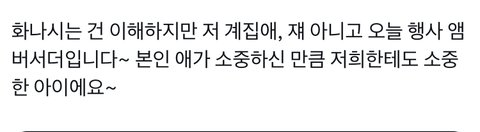 제니 카리나 주어만 바꾸는 걔가 엔터판 분탕 원인임 걔가 리사 로제 윈터 다 돌려까고 댓글에 홍은채 선글라스짤로 시작해서 릇 슴퀴 트와..