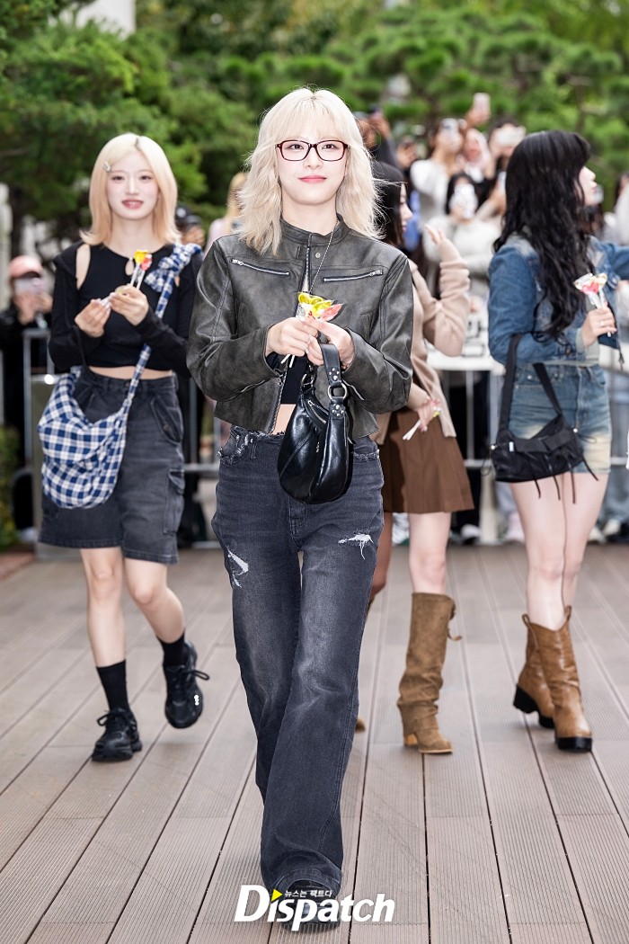'빌리' 문수아는 레더 재킷과 데님 팬츠로 멋을 냈다.