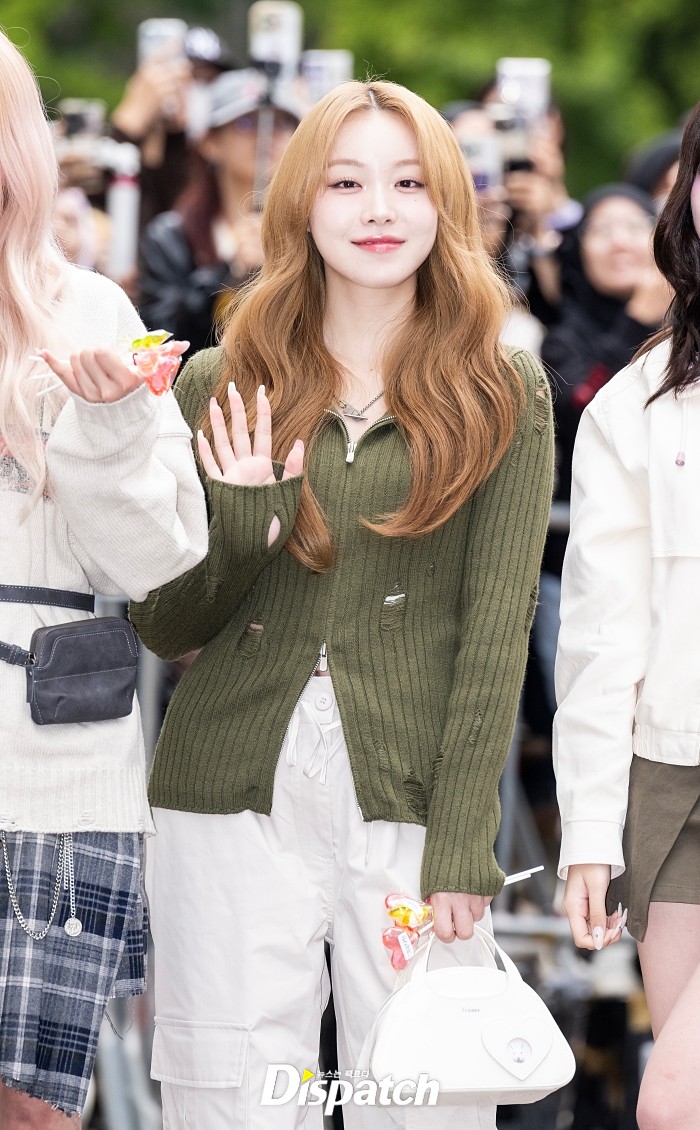 '빌리' 수현은 집업니트와 팬츠로 출근룩을 완성했다. 인형같은 미모가 돋보였다.