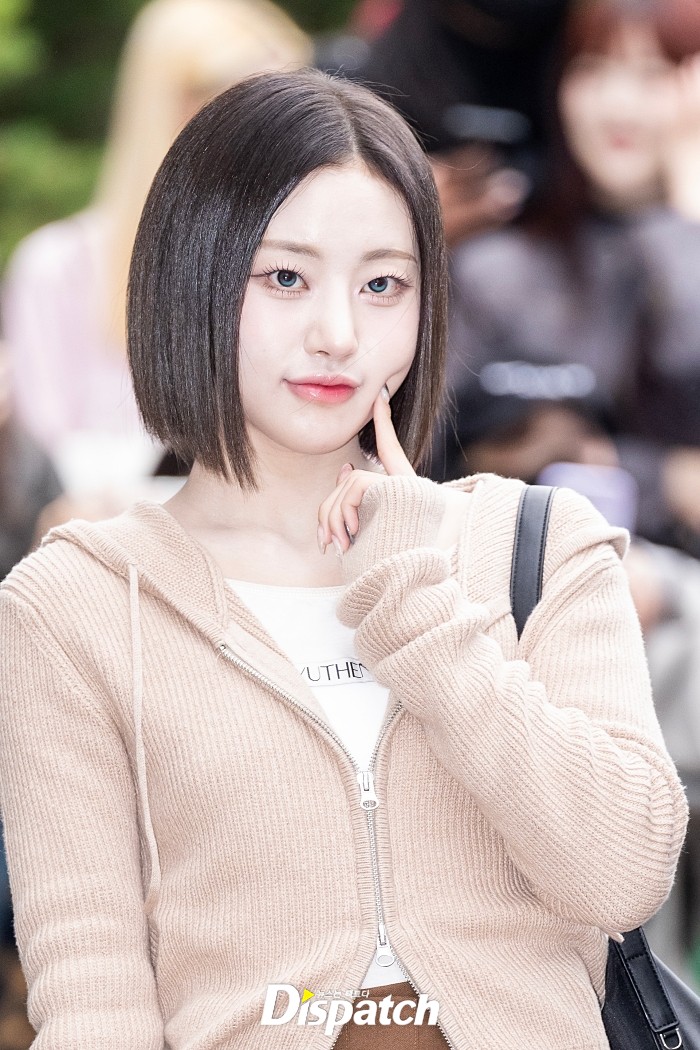 '빌리' 션은 집업 후드 니트와 스커트로 멋을 냈다. 단발 헤어스타일이 돋보였다.