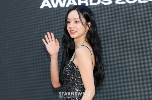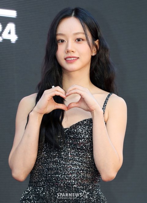 포토월에 선 혜리는 우아한 드레스를 입고 등장했다. 그는 볼하트, 손하트 포즈를 취하며 톱스타다운 매력을 뽐냈다.